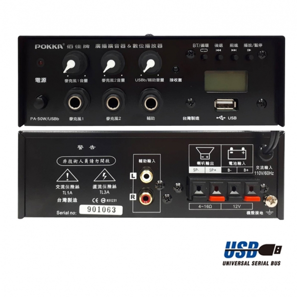 PA-50W 綜合擴大機USBb版 最大輸出功率50W/附數位播放器(USB插槽...