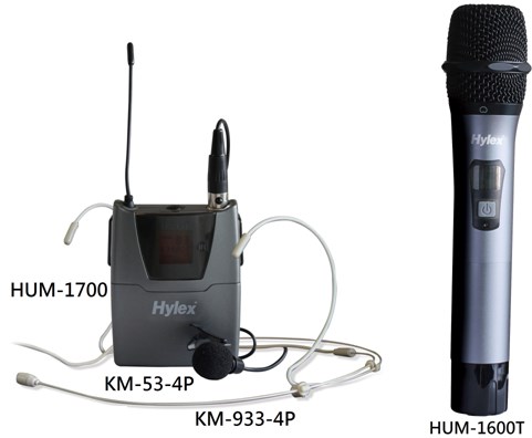 【1】手握式 HUM-1600T × 2 【2】頭戴式 HUM-1700 × 2+ KM-933-4P × 2【3】領夾式 HUM-1700 × 2 +KM-53-4P × 2 |