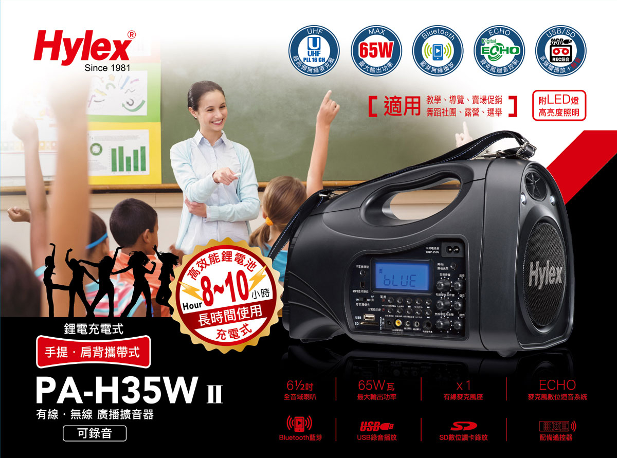✩✩PA-H35WTSII 手提‧肩背充電式有 / 無線廣播擴音器 UHF 16CH無線麥克風 / USB、藍芽、SD卡(附遙控器) / ECHO功能 / 可錄音